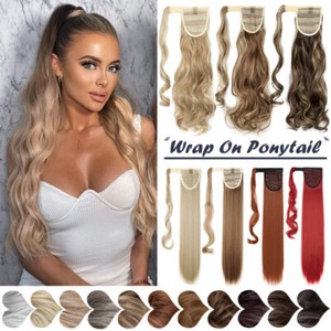 Highlight Thick Real WRAP Ponytail Clip In Hair Extensions Pony Tail As Human