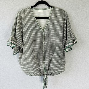 Max Studio Kimono Sleeve Tie-Front Blouse Print Bell Sleeve Womens Size Medium