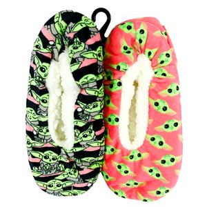Disney Star Wars Baby Yoda Grogu Women's Medium Fuzzy Slip-On Slippers - 2-Pair