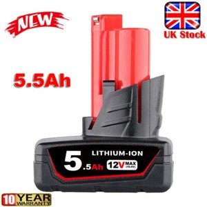 Pack 12V M12 Lithium Battery for Milwaukee M12B6 M12B5 XC 5.5Ah 48-11-2401 2402 £10.28Save up to 5% with Multi-buy