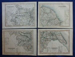 YORKSHIRE, original antique map x 4, Railways, JOSHUA ARCHER, c.1848