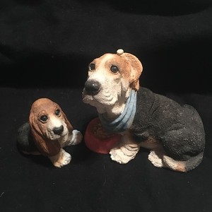 Stone Critters Majestic Basset Hounds with Food Dish Ears Pinned Back Figurine