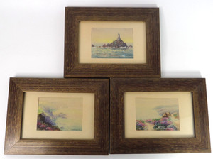 Trio of Stanley A Burchett Miniature Original Watercolour Artworks 9x6cm