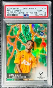 2020-21 STAD CLUB CHR.UCL AMAD DIALLO GREEN/YELLOW ELECTRIC REF #70 PSA 10