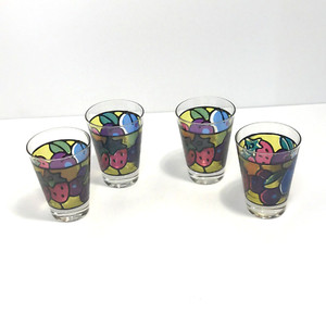 Libbey Fruit Stained Glass Shot Glasses 4 Pre-Owned Multicolor Vintage