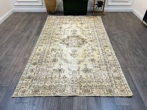 Beige Area Rug, Antique Turkish Rug, Bohemian Rug, Oriental Rug, 5.8 x 9.4 ft