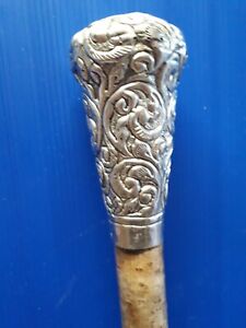WALKING STICK/CANE 117 SILVER BRASS VICTORIAN HANDLE 106cm HAZEL STICK