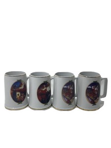 Norman Rockwell Coca Cola 1996 Santa Friends Christmas 10 Oz Mugs Gold Set of 4