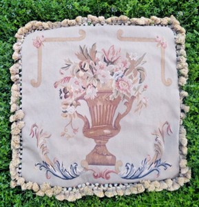 25" John Richard Aubusson Floral Needlpoint Tapastrey Wool Pillow Large Tassle