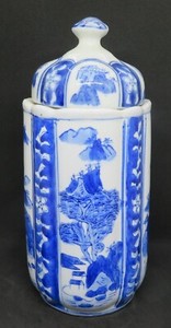 Chinese export blue white vintage Art Deco oriental antique tall cylinder vase A