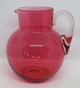 Cranberry pink glass vintage Victorian antique large jug pitcher