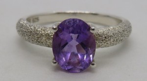 Sterling silver & amethyst vintage Art Deco antique textured ring - size P 1/2