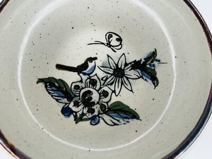 Vtg Small 2 Handled Bowl Hand Painted Japan Flowers Butterfly Bird Pottery Blue