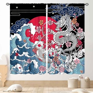 Japanese Curtains, Asian Style Japanese Wave Chinese Dragon Cherry Blossom Tr...