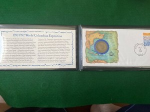 1892 Silver World Columbian Exposition first day cover , coin and stamp - T13