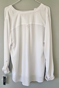 Zac & Rachel Women's White Blouse Long Sleeve Rollup Button V Neck Loose Fit XL