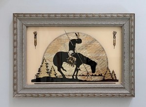 'END OF THE TRAIL' REVERSE PAINTING ON GLASS, FOIL BACKDROP, 9.5 X 6.75, SIGNED