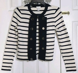 Chico’s 0 Long Sleeve Open Front Hook And Eye Navy Striped Cardigan Size S
