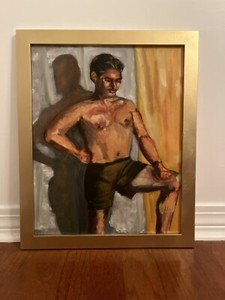 MAN STANDING PORTRAIT OIL BROWN HAIR VANVAS GOLD FRAME 22x18