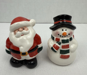 Christmas Santa and Snowman Salt & Pepper Shaker Ceramic Holiday Decor Kitchen