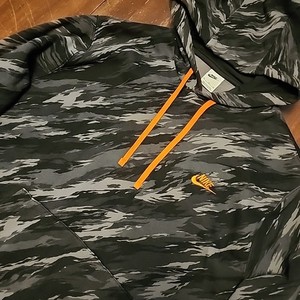 Nike Black Camo Tiger Stripe Orange Embroidered Hoodie Men XL Y2K Grunge Hunting