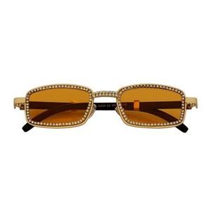 NEUMANN - Retro 90s Fashion Metal Small Rectangle Sunglasses Gold Brown