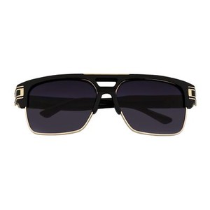 TWO BILLION - Large Fashion Square Horn Rimmed Sunglasses Gloss Black-Gold Smoke