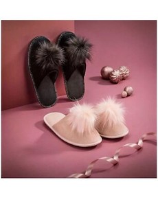 Avon Ladies Slippers - Black Pom Pom Super Comfy Soft Slipper LARGE Size (7-8)
