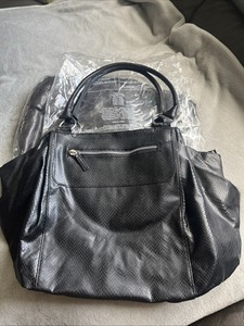 Avon Black Tulip Hand bag, Zipped Side Pocket, Inside Pockets And Zip To Close
