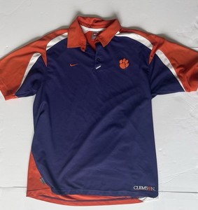 Vtg Nike Team Clemson Tigers Mens Shirt Purple Orange Polo Size XL Embroidered
