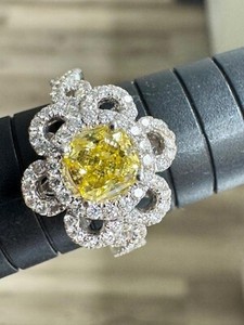 2.52 CT Fancy Yellow Natural Diamond Ring 14K Yellow Gold 5.34 Grams