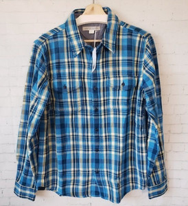 Outerknown Blanket Flannel Shacket Mens Size M Blue Yellow Heavy Plaid Shirt NEW