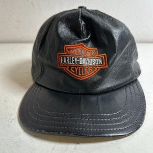 Vintage Harley Davidson Hat Black Leather Strap-Back Cap USA Made - One Size