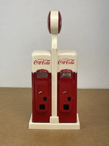 Coca-Cola Vintage 1993 Vending Machine Gas Pump Salt Pepper Shaker Set w/ Stand