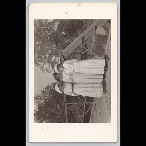 Antique Postcard Real Photo Women on Bridge Schwan's Studio Mansfield Ohio