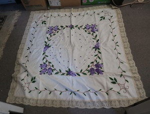 Vintage Arts & Crafts Hand Embroidered Linen Tablecloth Handmade Square 46"