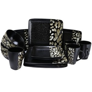 Elama Leo 16 Piece Stoneware Dinnerware Set In Black