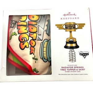 Hallmark Keepsake Miniature Disney Car Piston Cup Tree Topper & Skirt