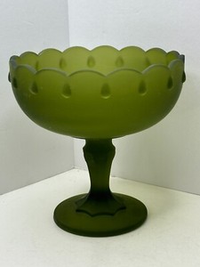 Vintage Frosted Green Indiana Glass Teardrop Scalloped Pedestal Compote Vase