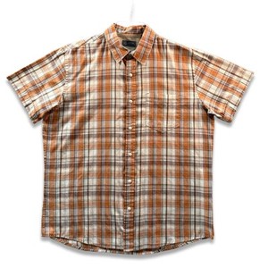 Arrow Orange Plaid Button Short Sleeve Pocketed Cotton Blend Shirt Men's L
