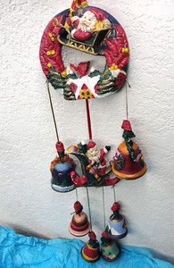 VTG Santa Claus Christmas Wind Chimes Ceramic Ornament Bells Toys Reindeer 20"