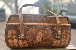 Vintage Leather Purse Hand Tooled Fish Deer Flowers Highly Detailed “Rusty”
