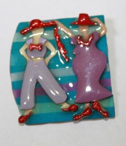 Woman Pin By Lucinda Ladies in Red Hats Shoes Bowtie Purple Clothes 3D Brooch