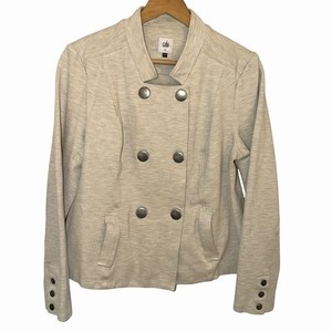 Cabi Charlie Jacket Style 3028 Oatmeal Ponte Knit Moto Double Breasted Large