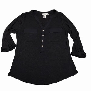 White House Black Market Black Burnout 1/4 Button V Neck Long Sleeve Size M