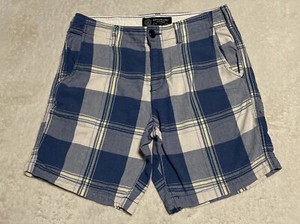 American Eagle Shorts Men's Size 30 Blue Plaid Flat Front Chino