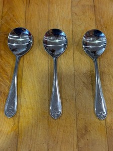 Set Of 3 Stainless Steel Round Bowl Soup Spoon Ribbon Crest Design Reed & Barton
