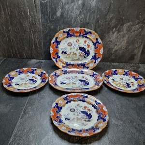 Rare Antique F MORLEY & Co patent Cashmere ironstone china Platter X2 Plates X3