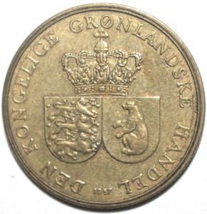 Danish Greenland 1 Krone Coin 1957 CS KM# 10 Denmark Polar Bear One 100,000