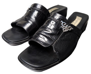 Brighton Women's 6 Britta Croc Embossed Leather Slide Sandals Italy Black Clean